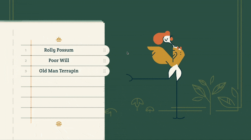 As a folklorist visiting the rugged hill country of the Ozarks, your chronicle of local lore is at the mercy of an unreliable storyteller. You’ll need to help sort his wayward ballad by rearranging its stanzas—but even this is not so straightforward. Each stanza you move is also a moment in time: shaped, like most folklore, by what comes before.